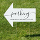 This elegant black and white wedding parking direction sign can be personalized with your information in chic lettering. Designed by Thisisnotme©