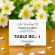 A place card with black text on white background for couples seeking a classic and timeless color combination that can complement various wedding themes. It is also suitable for couples who prefer a text based design without background elements for readability. The black text contrasting on the white background also improves readability. The text is center aligned and the fonts used are calligraphy, script and sans serif. Calligraphy and script fonts are used to enhance the design while the sans serif font is used to enhance readability. Customize it by typing the name of the guest, table number, names of the bride and groom, date and location of the wedding. You can also change the wording in the design tool including the font style, font color and background color. Please check the appearance of the front and back sides after typing text. If the appearance is pleasing to you, you can place your order now. If you need to resize or reposition the text, please adjust in the design tool. Table number to guide your guests to their designated seats and enhance your table setting. To the bride and groom, congratulations on your engagement! Wishing you both a lifetime filled with love and happiness.