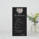 Guide your guests through your special day with this sophisticated black and white wedding program. The front features a timeless monochrome design with delicate white text on a deep black background. Key sections include 'The Celebration' schedule: Dear Welcome Words Exchange of Vows The Rings The Kiss Recessional.
