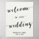 Black and white calligraphy wedding reception sign print with customizable text - you can add bride's and groom's name and wedding date. Dimensions of the sign print (poster) are 11 inches by 14 inches.