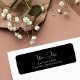 Complete your wedding stationery with our elegant Black and White Wedding Return Address labels. These labels offer a stylish and convenient way to personalize your invitations, thank you cards, and other wedding correspondence. The timeless black and white design exudes sophistication and complements any wedding theme or style. The high-quality printing ensures clear and crisp details, while the self-adhesive backing makes it easy to apply the labels to envelopes or packages. With customizable sections for your names and address, these labels add a personalized touch to your wedding stationery. Save time and effort by effortlessly adding a polished and professional finishing touch to your wedding invitations. Make a lasting impression with our Black and White Wedding Return Address labels and ensure that your wedding correspondence stands out with style and grace. Part of The Black and White Wedding Collection.