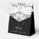 This design features a wedding black and white template favor box, with bride and grooms monogram initials, a modern elegant minimalist simple, calligraphy script ampersand typography, wedding favor favour packaging, custom customized personalized favors, great for wedding reception table decor, classic classy fancy filigree damask, a traditional wedding elegance decor, a custom wedding candy box