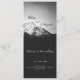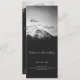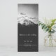 Black and white wedding under the mountains. Landscape photograph of a snow covered mountain with darkness below and white cloudy sky above. Names of the couple are in black font above the mountain in the sky and all the details are in white font below the mountain. Completely customizable and personalizable wedding products.
