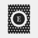 Personalize this black, white polka dots fleece blanket with an initial, monogram.