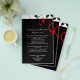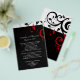 Bold and striking modern contemporary black wedding and stationery set with black and white with red accents, with delicate swirl scroll leaf background. Customize online with your wedding details. his item is avaliable as a complete wedding collection including invitations, RSVP cards, Save the Dates, Magnets, Stickers, Table Place Cards, Wedding Planning and Photo Album Binders and More!