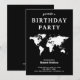 Black and White World Map Birthday Party Invitation