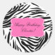 Black and White Zebra Print with Hot Pink Birthday Classic Round Sticker