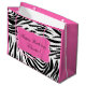 Black and white zebra pattern gift bags for birthdays. A hot pink shape in the middle where you can put your text.