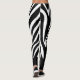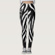 Big, bold animal print in zebra, so all in black and white. The bottom cuffs of these great leggings have a thick solid black border for a little accent and attention grabbing.