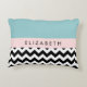 Black and White Zigzag, Chevron, Blue, Your Name Accent Pillow