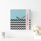 Elegant, stylish and sophisticated zigzag (chevron) pattern in black and white color on blue background. Modern and trendy gift, perfect for the zigzag lover in your life. Personalize by adding your name, nickname, monogram or initials.