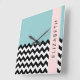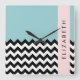 Black and White Zigzag, Chevron, Blue, Your Name Square Wall Clock