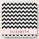 Black and White Zigzag, Chevron Pattern, Your Name Beverage Coaster