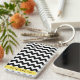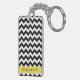 Black and White Zigzag, Chevron Pattern, Your Name Keychain