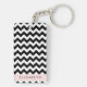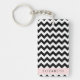 Black and White Zigzag, Chevron Pattern, Your Name Keychain