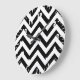 Black and white Zigzag Chevrons Pattern Large Clock