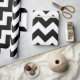 This bold geometric pattern features alternating rows of black and white zigzags.