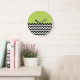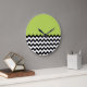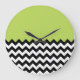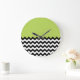 Black and White Zigzag Pattern, Chevron, Green Large Clock