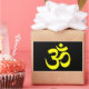 Yellow Om symbol on black. You can change the background color. If you'd like to add customized text try the color code FFFF00.