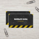Black and yellow construction stripes business card design with subtle grunge effects.