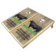 Natural Wood Cornhole Set, Yellow and Purple bags
