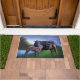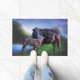 My ranch theme, art image features a black, Angus cow, and her calf, standing at the water's edge of a lush, green, pasture. Perfect for the cattle rancher.