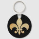 This key chain features a textured, distressed antique gold fleur de lis design on a black background.