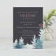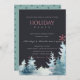 BLACK AQUA PINE TREE SNOWY FOREST CHRISTMAS PARTY HOLIDAY CARD
