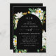 Black Arch Wedding. Elegant Bloom Floral + QR Code Invitation