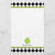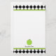 Stationery featuring a black argyle border over top and bottom with green trim. Personalize with your name at bottom under illustration of green apple.
