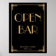 Black Art Deco Gold Wedding Open Bar Sign 18x24