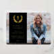 A formal but modern graduation photo announcement for any type of medical qualification. Featuring a full-bleed photo with a color overlay and the Asclepius symbol surrounded by a laurel wreath in a foil color of your choice. The template text for the graduate’s details is also foil pressed and is completely customisable, so the font size, style and placement can be changed. The back features a solid colored background and template text for a longer message. If you would prefer to include no text on the back, just delete it before ordering. If you would prefer a photo on the back of the card, delete both the colored background and the template text and upload your own photo. The design is available in other colors and with designs for specific medical qualifications in my store.