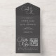 Black Ash White Monogram Script Minimalist QR Cod All In One Invitation