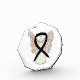 The art paperweight or award features the picture of an black awareness ribbon art painting. Add your own optional words or message to the paperweight for personalized award art! The black awareness ribbon art award or paperweight gift can be customized with personalized messages to make great awareness cause images or pictures for fundraisers, awareness gifts, or other special events. Give this art as an awareness ribbon gift for any occasion!