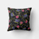 Black Background Floral Pink Blue Pattern Design Throw Pillow