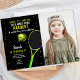 Celebrate your child’s birthday with these stylish Black Background Tennis Birthday Invitations! Featuring a bold tennis design with a sleek black background, these customizable invitations allow you to add a personal photo for a unique and fun touch. Perfect for a tennis-themed birthday party, these invitations will bring an energetic and competitive vibe to your little one’s celebration. Order now to make your child’s birthday a smashing success!