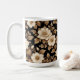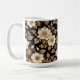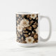 This item is a 15oz coffee mug that has a black background with golden leaves and white flowers.