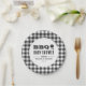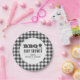 Get ready to celebrate a little bundle of joy with our delightful BBQ baby shower paper plates featuring black typography and black gingham border.