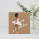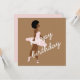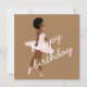 Minimal afro hair black ballerina modern art portrait illustration birthday greeting card for any age, on a light brown & pink background, you can change the font (color, style) & background color as you like, custom script brown and white text (back side)