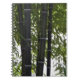 A personal sized, spiral bound notebook that features a cover photo image of tall stalks of black bamboo plants and their leaves. An attractive, botanical design!