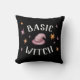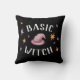 Show your halloween side with your basic witch black minimalist vibes pillow. Complete with a modern design of hand-painted witch hat and stars with curved text that says "Basic Witch".