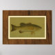 This piece of arwork will please any fish amateur. The painting represents a black bass swimming into green water. In this image, the brown borders makes it the perfect decorative art piece.