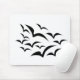 This mousepad features a collection of simple images of bats flying together in a cloud pattern. The bats are black and the background is white. Kids are sure to love this cute design.