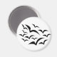 This magnet features a collection of simple images of bats flying together in a cloud pattern. The bats are black and the background is white. Kids are sure to love this cute design.