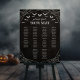 Black and white Halloween wedding seating chart sign with flying bats and spider webs framing your seating chart for ten tables. 10 table goth wedding seating chart in a cool bat and spiderweb themed design with grungy font and background.