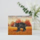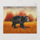 A cute black Bear taking a stroll through a field of bright fall colored foliage.