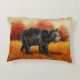 A cute black Bear taking a stroll through a field of bright fall colored foliage.