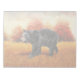 A cute black Bear taking a stroll through a field of bright fall colored foliage.