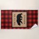 Black Bear On A Red And Black Plaid Personalized Beach Towel