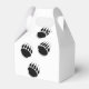 Black bear paw prints. Custom favor boxes in black and white. Original image. Party decor idea.